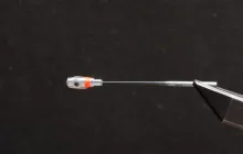 1. If you want a red or orange accent to the fly, wrap some tying thread on the middle of the tube and whip finish. Just a few wraps will suffice. Alternatively you can wrap a single strand of red flash into the LCR before curing it.